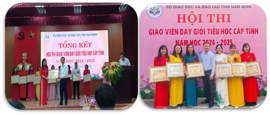 Hội thi giáo viên dạy giỏi cấp tiểu học tỉnh Nam Định năm học 2024-2025 đã kết thúc và thành công tốt đẹp để lại nhiều ấn tượng sâu sắc trong công tác tổ chức Hội thi. Chúc mừng cô giáo Mai Thị Thanh Bình đạt danh hiệu Giáo viên dạy giỏi cấp Tỉnh.