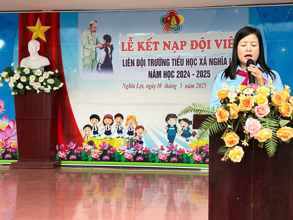 Lễ kết nạp Đội viên là một nghi lễ quan trọng trong công tác Đội trường học. Liên đội Trường Tiểu học xã Nghĩa Lợi xin gửi lời chúc mừng đến các em học sinh đã chính thức trở thành Đội viên và hy vọng các em sẽ tiếp tục phát huy truyền thống tốt đẹp của Đội Thiếu niên Tiền phong Hồ Chí Minh, phấn đấu học tập và rèn luyện để xứng đáng là con ngoan, trò giỏi, đội viên gương mẫu.