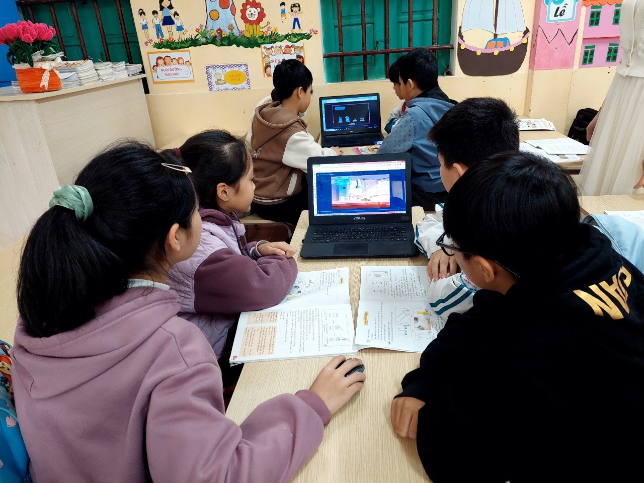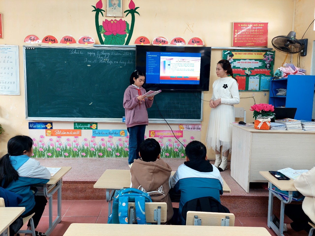 Thực hiện Kế hoạch chuyên môn năm học 2023-2024, chiều ngày 13/3/2024, tổ chuyên môn 4, 5 sinh hoạt chuyên môn với chuyên đề “Ứng dụng thiết bị dạy học số trong dạy học môn Khoa học lớp 5”.