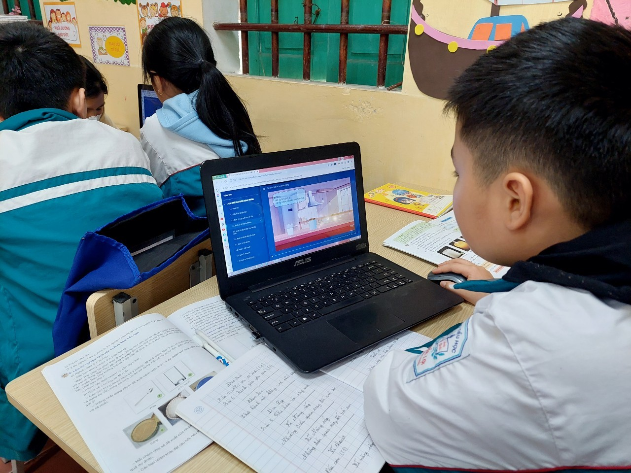Trong tiết dạy, Thiết bị dạy học số được thực hiện bằng phần mềm Articulate Storyline, một phần mềm được sử dụng để thiết kế bài giảng E-Learning quen thuộc với hầu hết tất cả các giáo viên.
