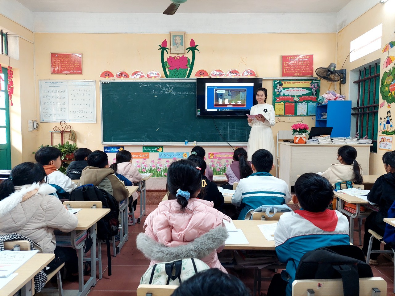 Tổ chuyên môn đã lên ý tưởng thiết kế, sử dụng thiết bị dạy học số trong dạy học, số hoá các thiết bị, phương tiện, đồ dùng trong quá trình lên lớp nhằm nâng cao hiệu quả tiết dạy. Tới dự buổi sinh hoạt chuyên đề có Ban giám hiệu nhà trường, giáo viên Tổ 4,5. Trong tiết dạy giáo viên đã ứng dụng phần mềm PowerPoint tạo các Slide bài giảng. Sản phẩm thay thế cho GV và HS phải chuẩn bị dụng cụ thí nghiệm. Thiết bị giúp HS tương tác đa chiều và chủ động học tập hoặc xem lại học liệu được nếu thấy cần thiết. Thông tin cung cấp kiến thức đa dạng, hình thức hấp dẫn khoa học.