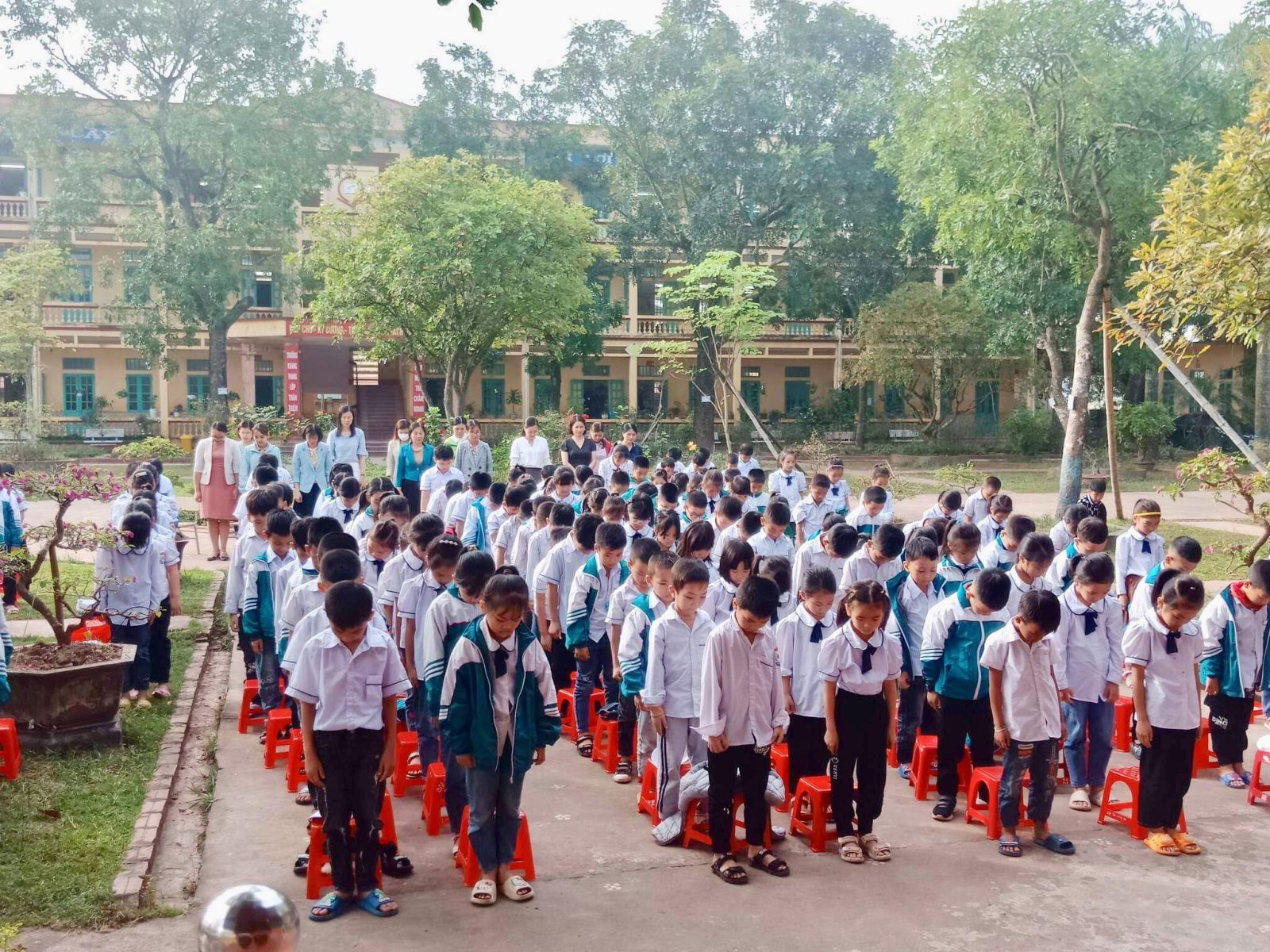 Sau phút tưởng niệm, cô Nguyễn Thị Mơ – Tổng phụ trách đã kêu gọi các thầy cô và các em học sinh thực hiện nghiêm túc luật ATGT như phải đội mũ bảo hiểm khi đi xe moto, đi đúng làn đường, không giàn hàng hai, hàng ba, không tụ tập ở cổng trường gây ùn tắc giao thông…