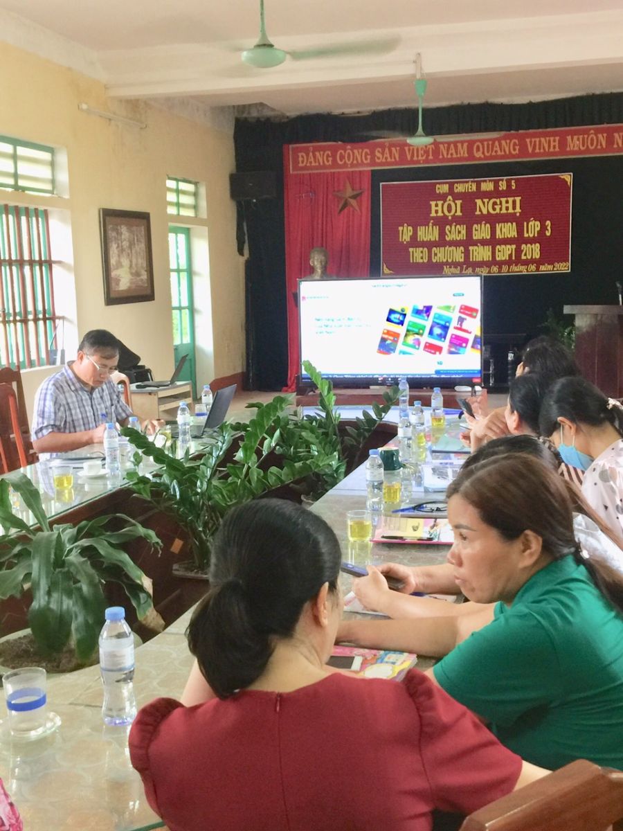 Ngay từ sáng sớm, Ban giám hiệu các trường trong Cụm chuyên môn số 5 và giáo viên khối 3 đã có mặt đông đủ. Mọi điều kiện cơ sở vật chất phục vụ cho buổi tập huấn đã được nhà trường chuẩn bị chu đáo. Cán bộ, giáo viên tham gia tập huấn tại điểm cầu nhà trường qua ứng dụng Zoom Meeting rất ổn định, không gặp sự cố.