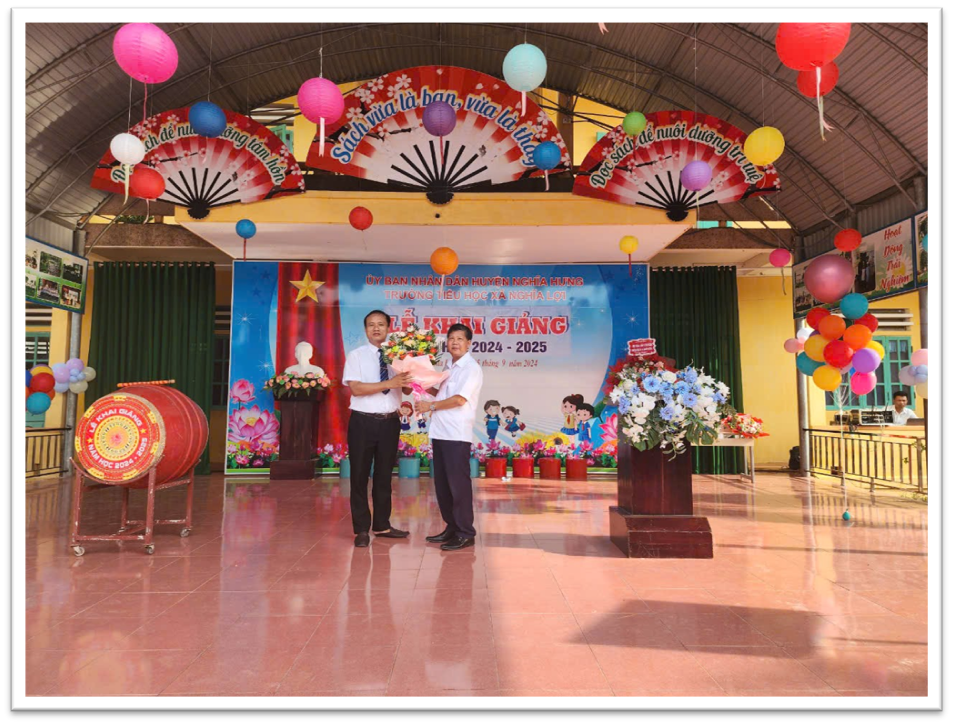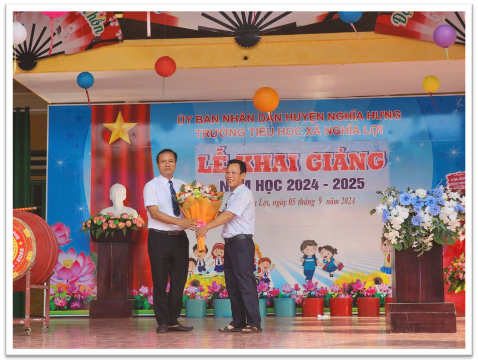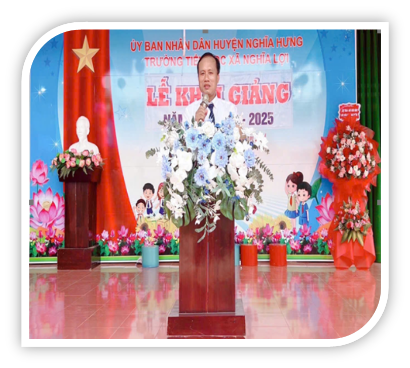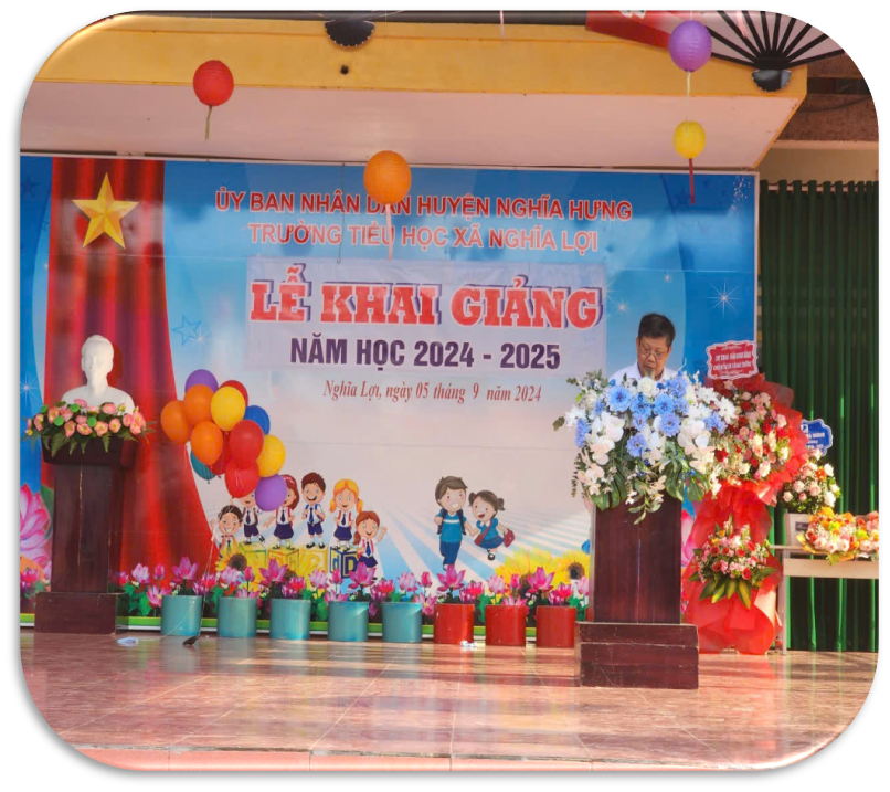 Phát biểu động viên thầy và trò nhà trường, ông Trần Xuân Túy – Chủ tịch UBND xã Nghĩa Lợi đã ghi nhận sự cố gắng của tập thể cán bộ, giáo viên, nhân viên nhà trường trong thời gian qua đã nỗ lực không ngừng tập trung cải tạo cảnh quan trường lớp theo hướng đảm bảo an toàn, kiện toàn hội đồng tự đánh giá hoàn thiện hồ sơ chuẩn, chuẩn bị cho công tác đánh giá ngoài. Ghi nhận sự tham gia tích cực của cha mẹ học sinh trong việc cải tạo cảnh quan trường lớp.