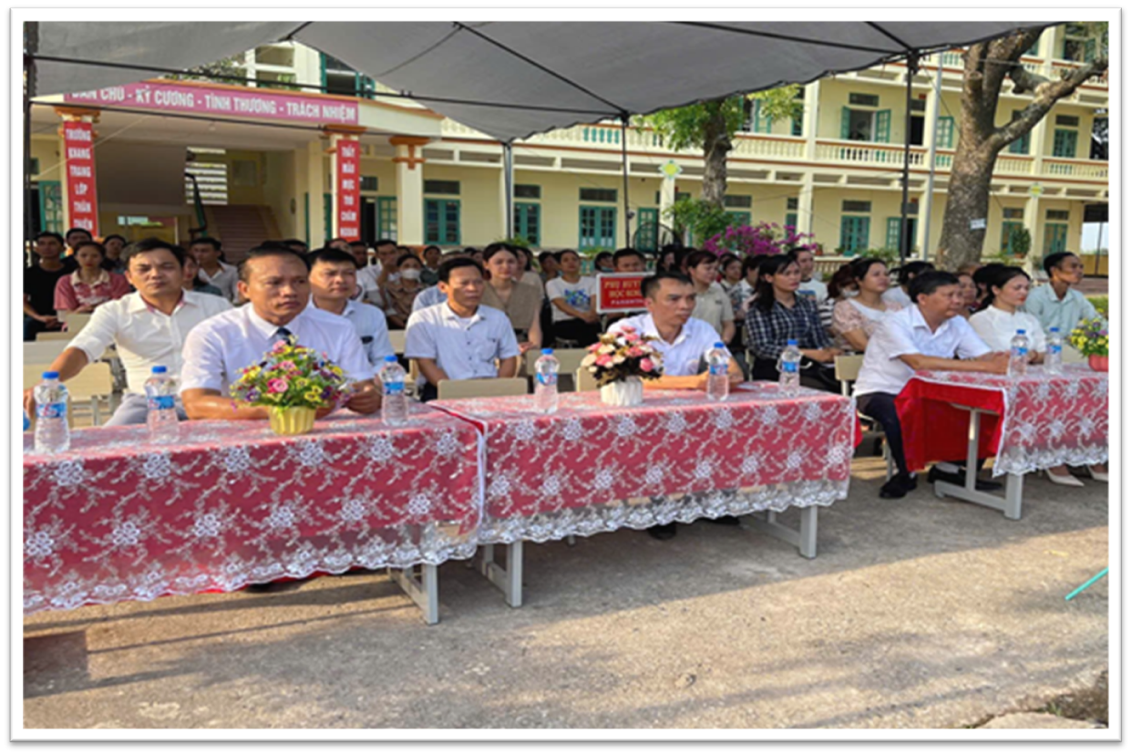 Thầy Đỗ Hồng Duy – Đảng ủy viên, Bí thư chi bộ, Hiệu trưởng nhà trường trình bày diễn văn khai giảng. Trong diễn văn khai giảng Thầy đã nhấn mạnh các nhiệm vụ trọng tâm của năm học khắc phục khó khăn về cơ sở vật chất xuống cấp, tập trung cải tạo cảnh quan, củng cố các tiêu chí thư viện chuẩn phấn đấu về đích Chuẩn quốc gia mức độ 2.