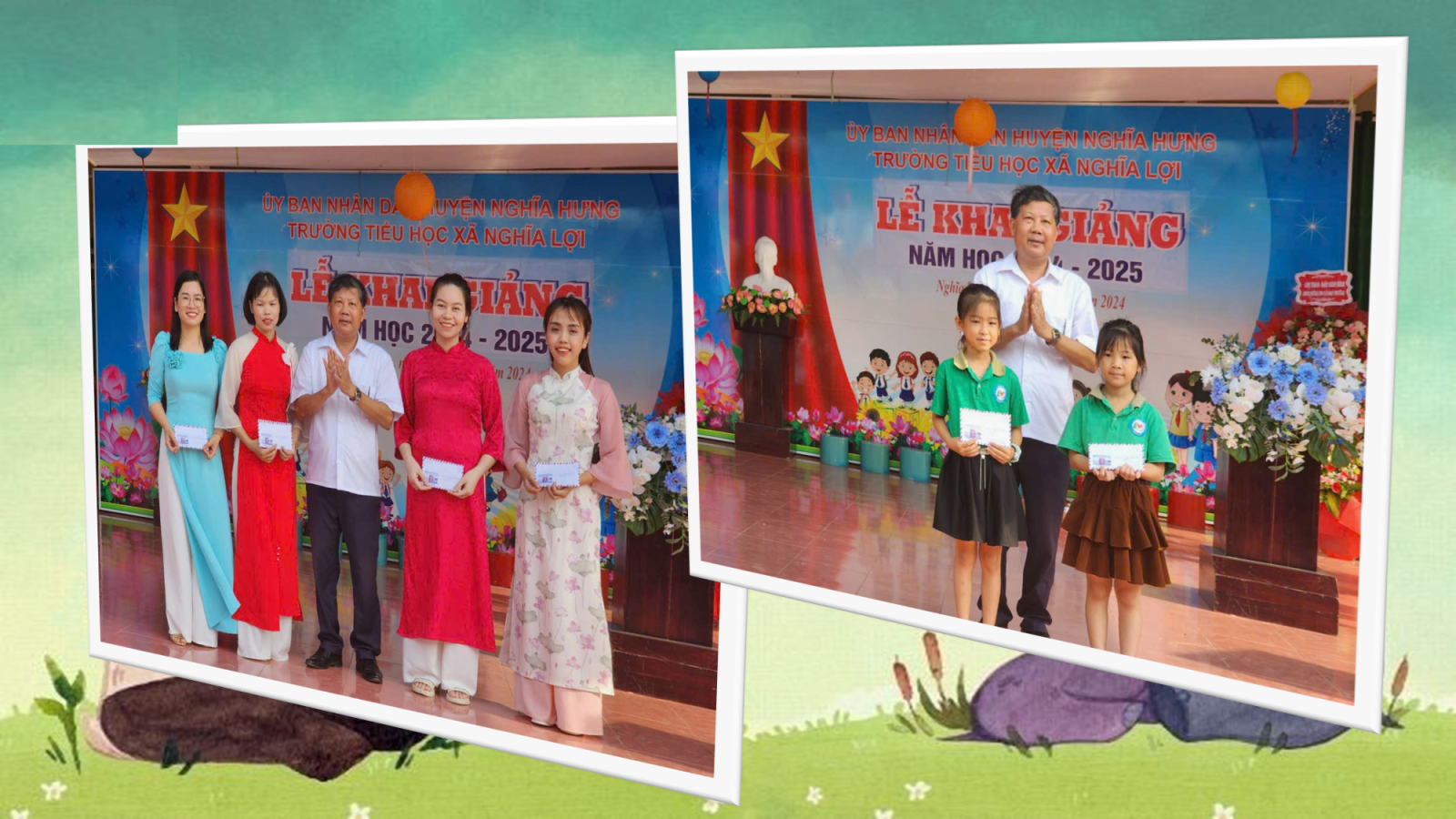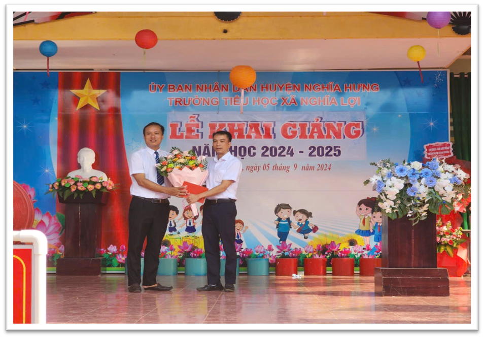Nhân dịp khai giảng năm học mới 2024-2025, Trường tiểu học xã Nghĩa Lợi xin gửi tới toàn thể các em học sinh, các thầy cô giáo và các bậc phụ huynh những lời chúc tốt đẹp nhất. Chúc các em học sinh có một năm học thật vui vẻ, ý nghĩa và thành công. Chúc các thầy cô giáo luôn dồi dào sức khỏe, nhiệt huyết và sáng tạo trong công tác giảng dạy. Và xin gửi lời cảm ơn chân thành tới Đảng, Chính quyền địa phương, các cơ quan doanh nghiệp, các mạnh thường quân, các bậc phụ huynh học sinh, các cựu học sinh đã quan tâm, ủng hộ và đồng hành cùng thầy trò nhà trường trong thời gian qua. Chúng ta tin tưởng một năm học mới sẽ có nhiều niềm vui đến với thầy và trò nhà trường.