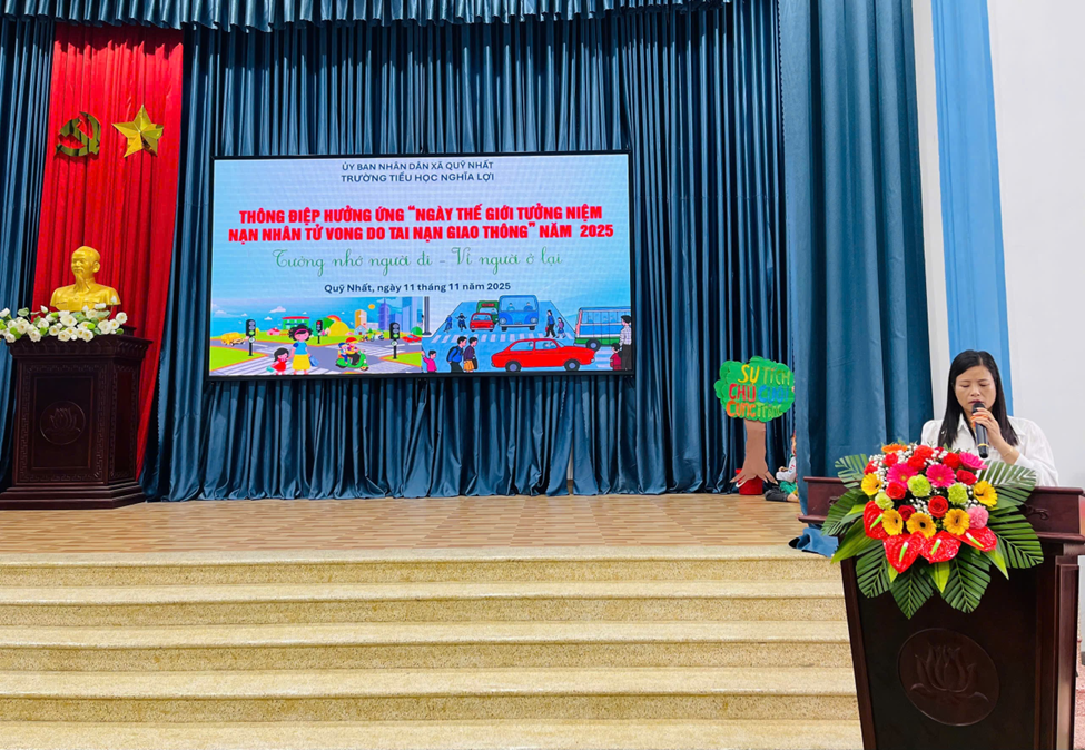 Cô Nguyễn Thị Mơ – tổng phụ trách Đội gửi tới các em học sinh thông điệp hưởng ứng : “Ngày thế giới tưởng niệm các nạn nhân tử vong do tai nạn giao thông”.