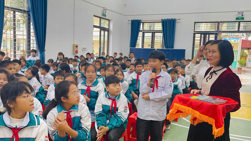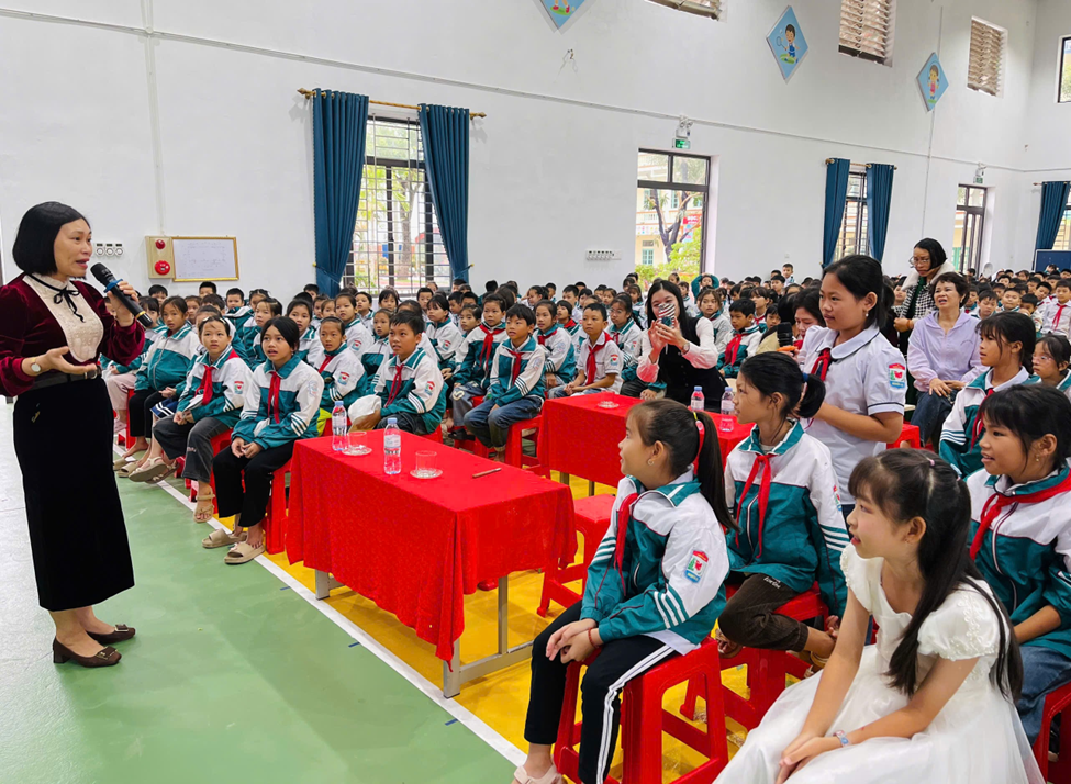 Cô Nguyễn Thanh Huyền – phó trưởng phòng thư viện tỉnh Ninh Bình giao lưu cùng các em học sinh.