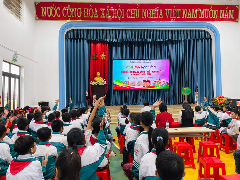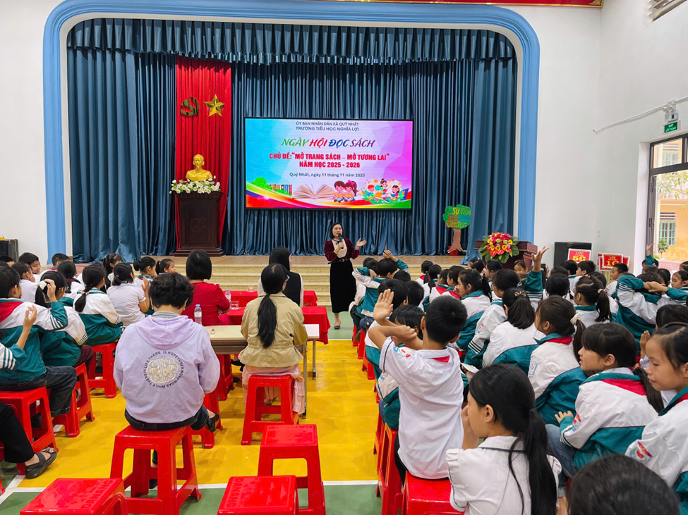 Sách là nguồn tri thức vô tận, là người bạn đồng hành không thể thiếu của tất cả mọi người trên mọi hành trình khám phá thế giới. Nhằm lan tỏa văn hóa đọc và nuôi dưỡng niềm đam mê đọc sách trong học sinh. Sáng nay, ngày 11/10/2025, trường Tiểu học Nghĩa Lợi phối hợp với thư viện tỉnh Ninh Bình tổ chức ngày hội đọc sách năm 2025 với chủ đề: “Mở trang sách – Mở tương lai” cho các em học sinh toàn trường tham gia.