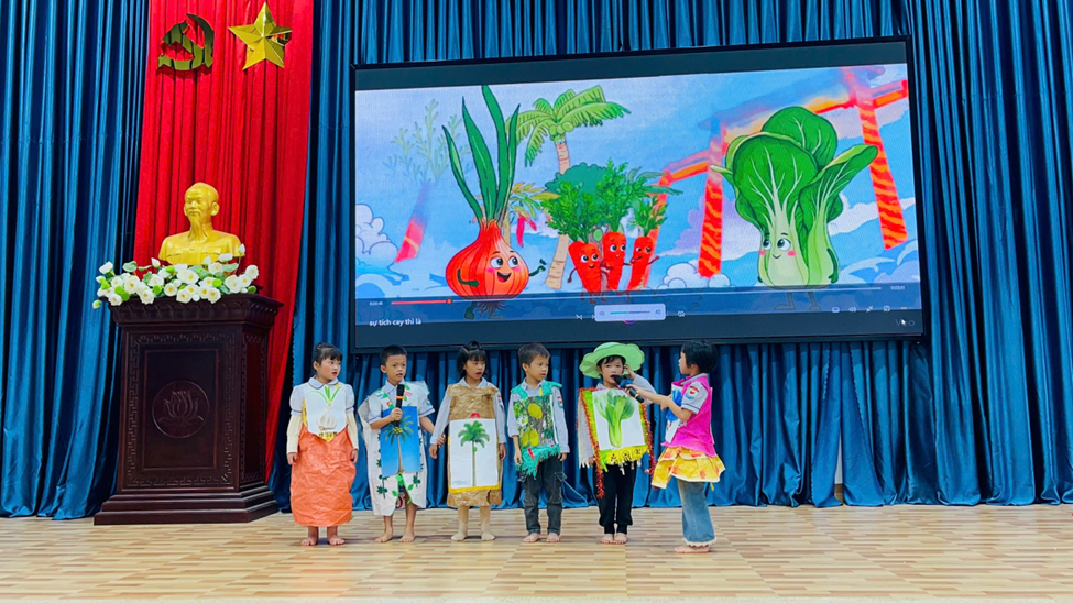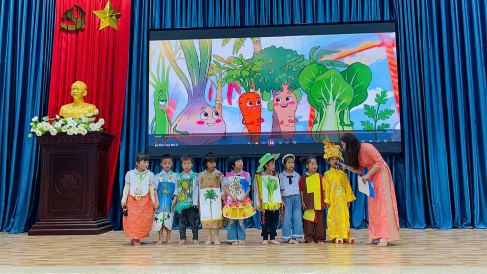 Dựa vào nội dung truyện : “Sự tích cây thì là”. Các em học sinh lớp 2B đã diễn xuất rất thành công.