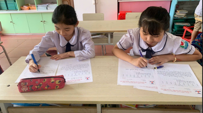 Cuộc thi “Viết chữ Đúng và Đẹp” được toàn thể các em học sinh trong cả trường tham gia nhiệt tình, hào hứng. Nền nếp rèn chữ, giữ vở được quan tâm từng tiết học. Chính vì thế, nét chữ của các em học sinh tiến bộ rõ rệt ngày càng đều, đẹp và mềm mại hơn.
