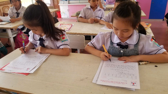 Các em học sinh say sưa luyện chữ